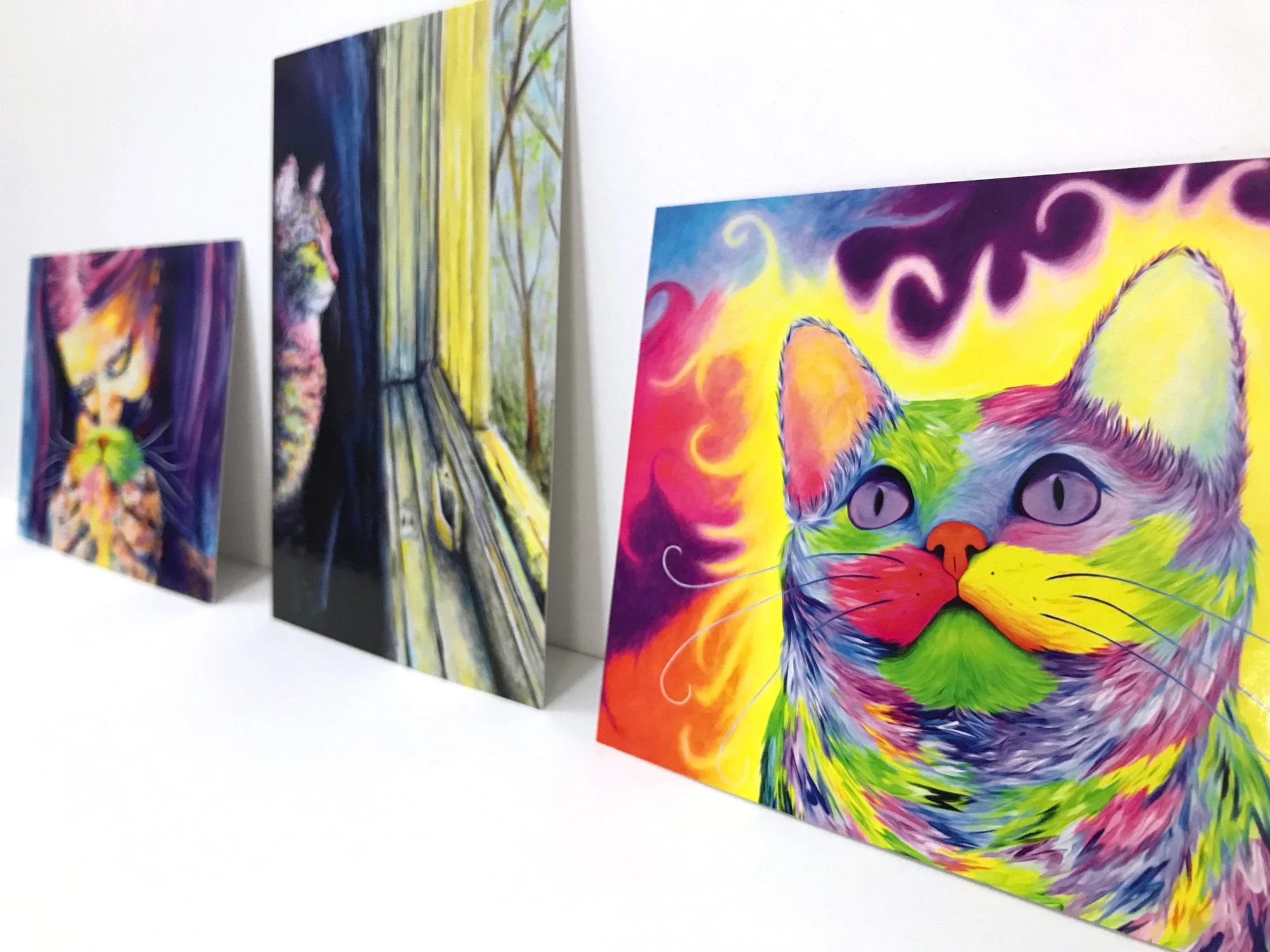 These cute cat postcards feature three of my paintings - The Observer, Rainbow Kitty, and Namaste. They are fun cat lover gifts or a way to stay on touch with your cat loving friends!