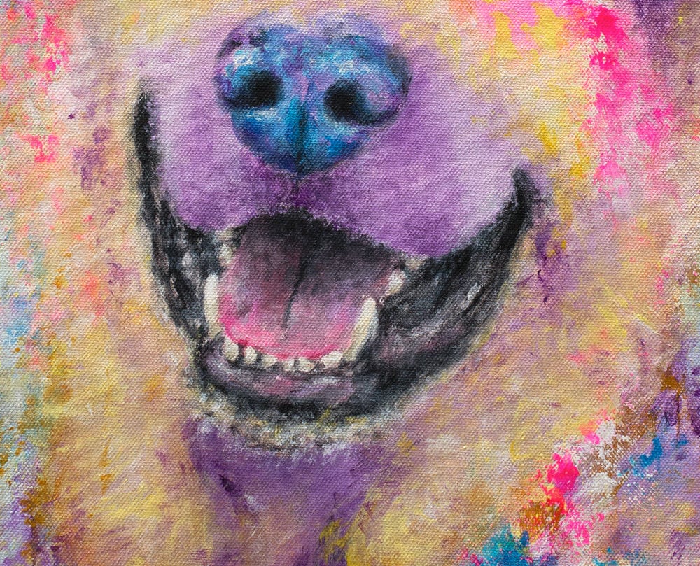 This fine art print of my colorful German Shepherd dog painting is available on paper or ready-to-hang canvas!