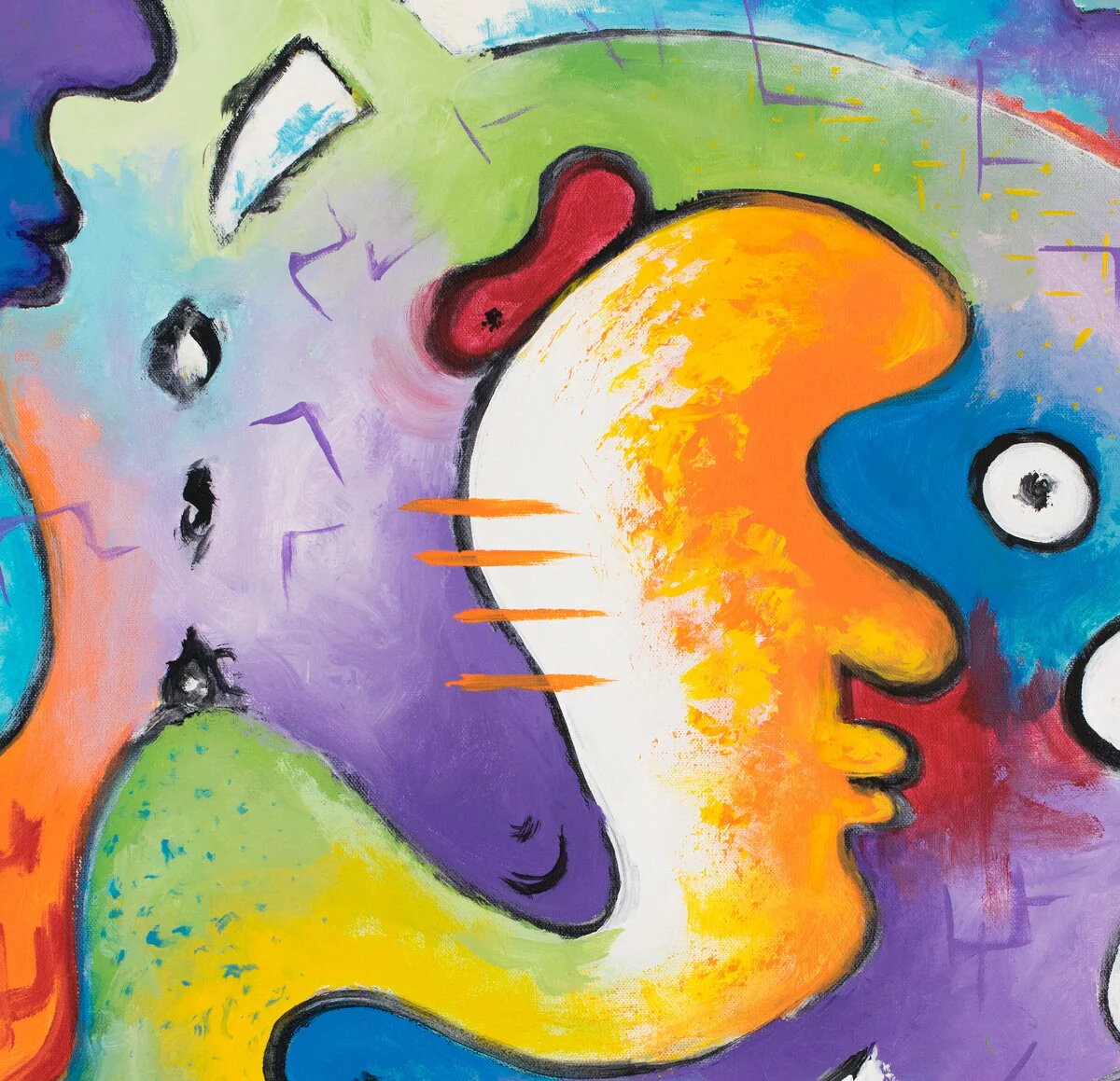 This is an original painting entitled Wonderstruck. I created it in 2020 while in self-isolation to avoid getting coronavirus. The style is neo-expressionism. I also used surrealist automatism in some of my mark-making to give voice to my subconscious.